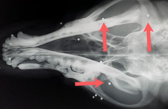 Mehrfachfrakturen nach Autounfall mit Lähmung der Hinterextremitäten bei einem Hund