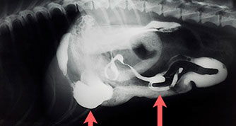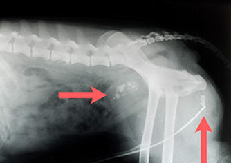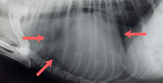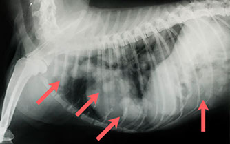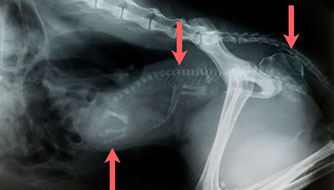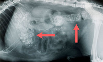 Knochenkot im Magen und Darm eines Hundes nach Grillparty